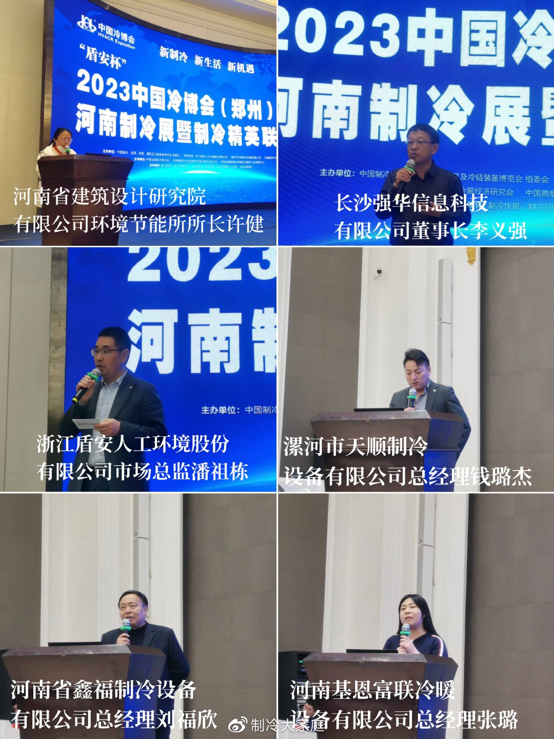 3月10日下午,2023“盾安杯”中国冷博会(郑州)路演·河南制冷展暨制冷精英联谊会迎来了精彩的会议环节,河南省建筑设计研究院有限公司环境节能所所长许健、长沙强华信息科技有限公司董事长李义强、浙江盾安人工环境股份有限公司市场总监潘祖栋、漯河市天顺制冷设备有限公司总经理钱璐杰、河南省鑫福制冷设备有限公司总经理刘福欣、河南基恩富联冷暖设备有限公司总经理张璐 发表致辞。