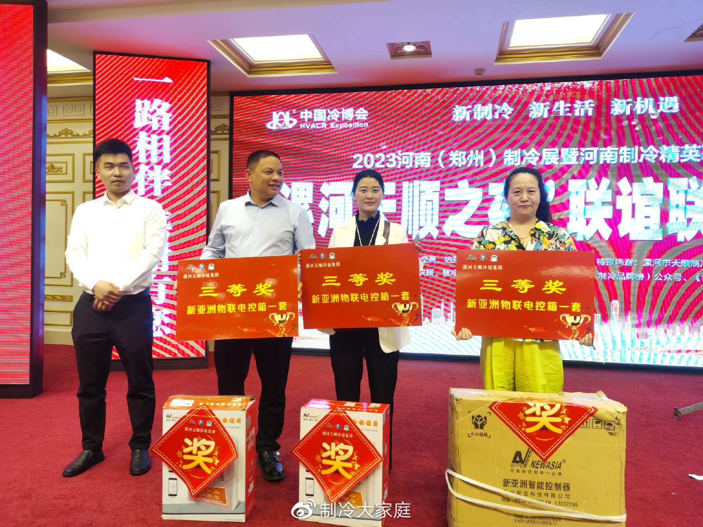 多名幸运客户获得了富士豪Q4-24.1 4P压缩机1台,艾默生箱式一体机1 台 ,DD22冷风机2台 ,新亚洲物联网电控柜3套;以及南阳天顺新厂投产特别奖:贝澳风幕机10台;鸿森送割刀+压力表 40份 ,徐州智控库灯,信联颈枕,冰湖油分油分、减震管等。