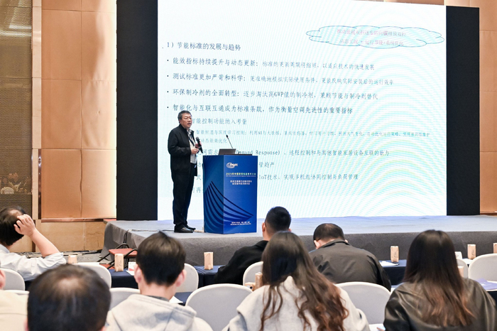 能效提升与技术创新是空调行业绿色转型的另一核心维度。中国标准化研究院研究员成建宏在“空调节能标准升级与趋势”中分析指出,能效标准的持续升级已成为推动行业技术进步的核心驱动力,新的标准修订呈现多方面变化,融入智能化、动态电网响应、分布式管理、可再生能源融合等新技术相关指标;同时将空调的健康、除湿、采暖等新功能及低环境温度使用场景纳入评价体系,新增动态测试方法和制冷剂碳排放相关考核,以兼顾节能与制冷剂替代。西安交通大学吴建华教授的“能效提升背景下转子压缩机低转速技术研究”,则从核心部件升级角度切入,提出通过压缩机技术革新突破能效瓶颈,为空调系统性能提升提供了关键技术路径。此外,西安交通大学熊通分享的“基于气体旁通换热技术的空气源热泵系统性能提升研究”、恒新基电子(青岛)有限公司杨超带来的“雷达传感器助力空调智能化人感交互”,分别从系统优化与智能交互角度,展现了能效提升与用户体验升级的融合创新趋势。