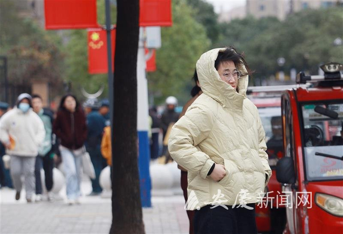 11月17日,市民在寒风中身着冬装出行。 全媒体记者 徐火炬 摄气象数据显示,截至17日12时,安庆站点最低气温为7.5℃,全市最低温出现在岳西,仅4.6℃。单看数字,气温似乎并不算极低,但为什么大家都感到格外寒冷?这背后的“罪魁祸首”其实是风寒效应。当风接触到我们的肌肤时,会在无形中“偷”走皮肤表面的热量,导致体感温度远低于实际气温。